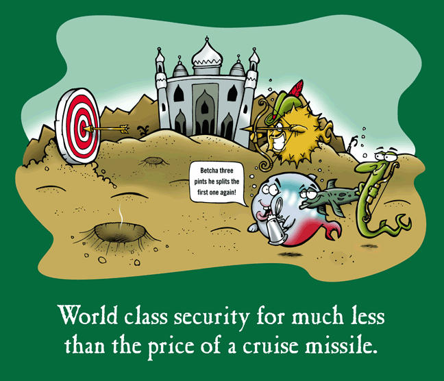We could not decide who should live, so there are two versions of this shirt. Shirt #35 is a Black T-shirt where the Black Spyfish wins; Shirt #36 is a White T-shirt where the White Spyfish wins. When purchasing, choose carefully based on the outside border of the image (or, the colour of the spy who lives). Unfortunately this creates a dilemma if you would prefer to wear a black shirt but have the White Spyfish (obviously representing yourself) live. But then, isn't everything a dilemma these days?