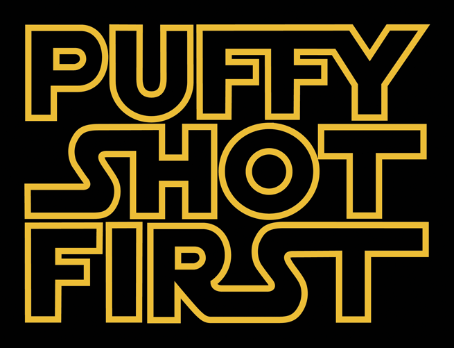 A simple black T-shirt showing a new Puffy.
